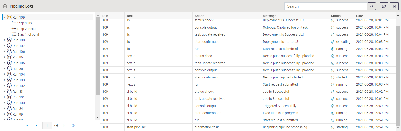 Opsera displays each step of a workflow; each step represents a tool and an operation to be performed.