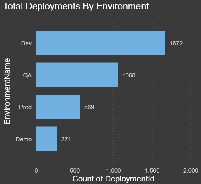 Total Deployments by Environment: The chart below shows how many total deployments have occurred in each environment: