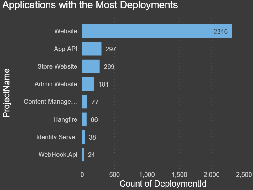 Applications with the Most Deployments: The chart below shows which project/application has had the most successful deployments.