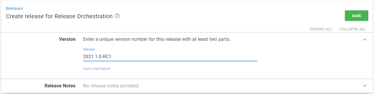 This example uses a modified version of SemVer for the components, Year.Minor.Patch.Build, or 2021.1.0.1. The orchestration project will be closer to standard SemVer, Year.Minor.Patch or 2021.1.0.