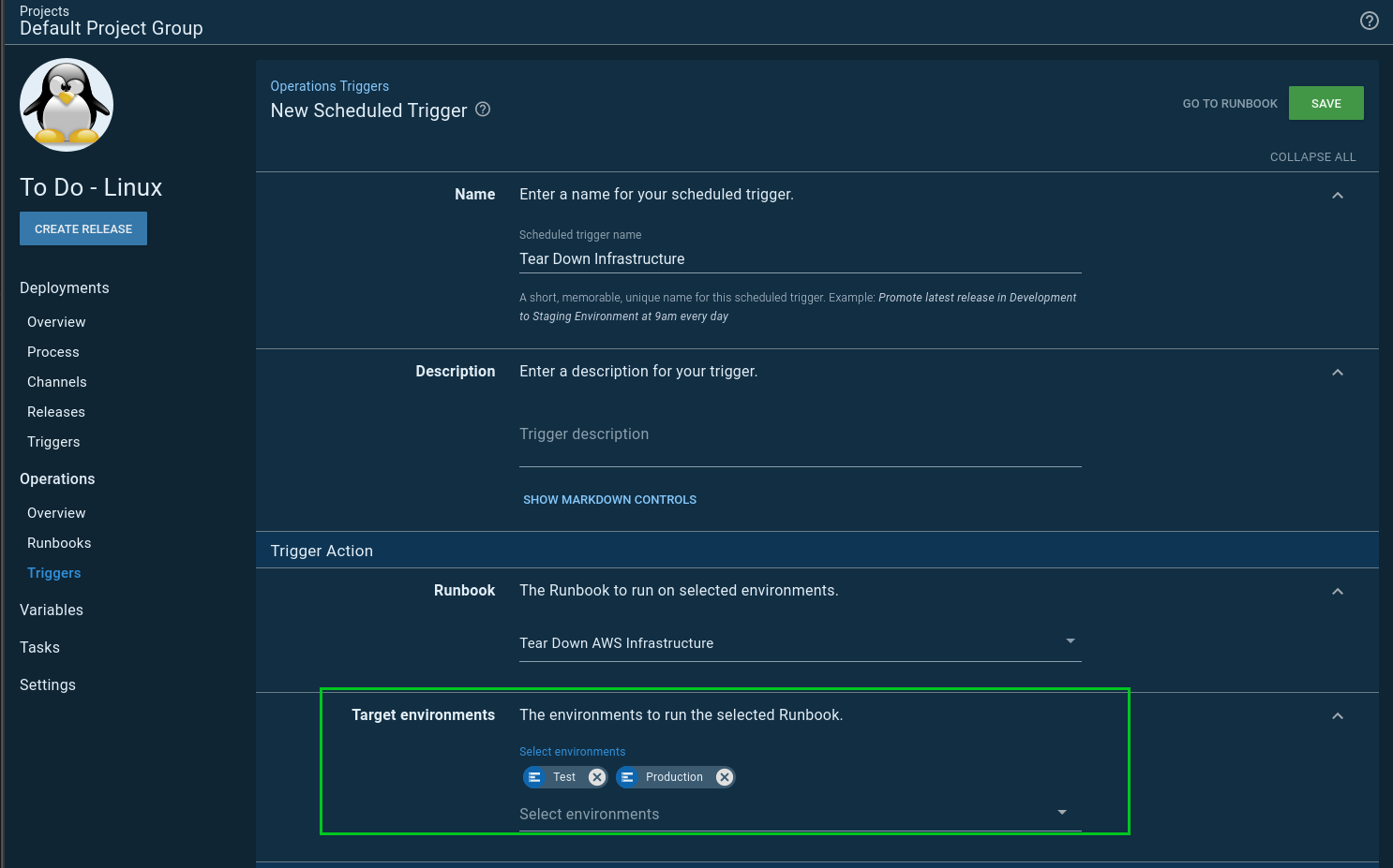 This led me to a slight problem. The scheduled trigger for runbooks lets me select 1 to N number of environments: