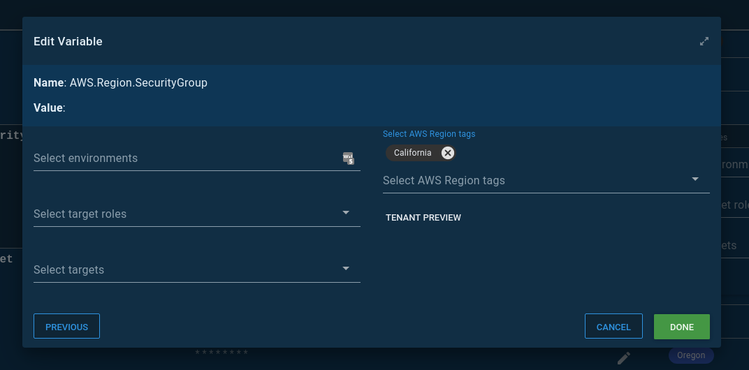 I did this because tenant tags can be scoped to a variable. You can access that variable scoping by clicking on the Open Editor link: