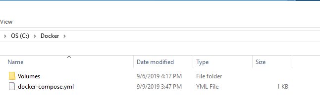 I saved that docker-compose file in the C:\Docker folder on my hard drive: