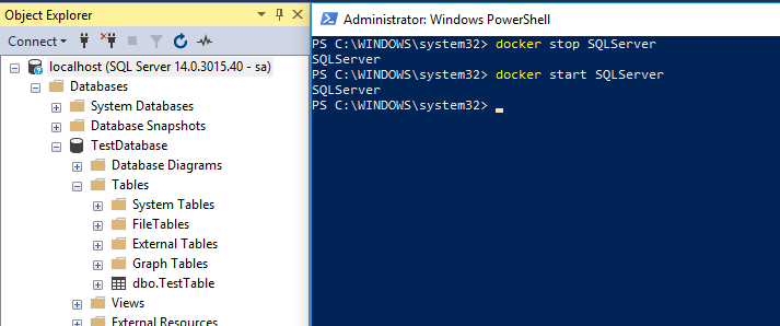 The database files need to be persisted. That’s accomplished using a volume will be pointed at C:\Docker \Volumes\SQLServer. There are many, many articles about Docker Volumes. The TL;DR; is add the --volume switch to docker run to add a volume. If the container is already running, it needs to be destroyed before adding a volume: