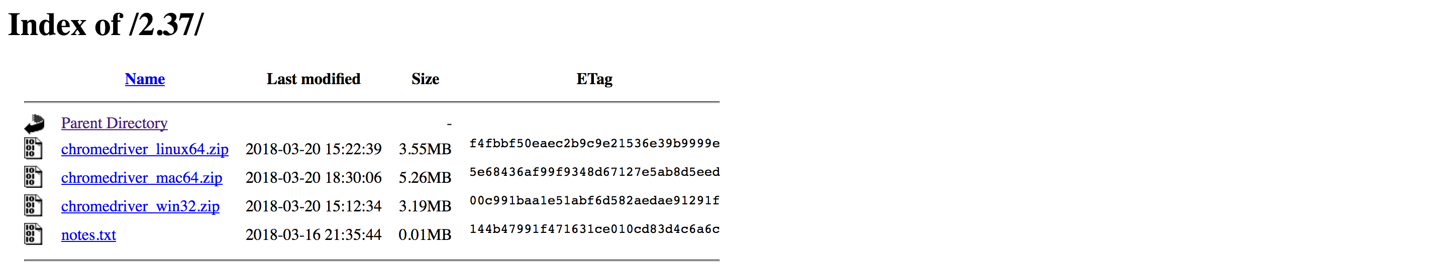 Opening this link reveals a number of directories that correspond to the version of the driver executable. You will almost always want to get the latest version, although the sorting applied to the list does not make the latest version apparent.