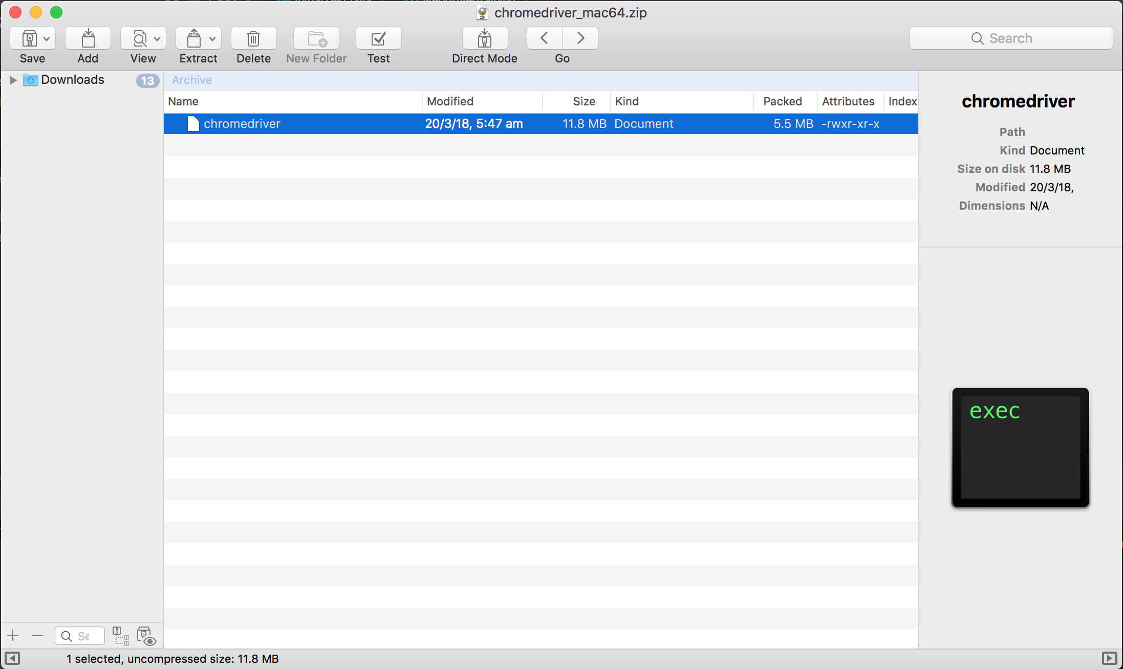 In this example, I have extracted the driver executable to /Users/Shared/tools/chromedriver.
