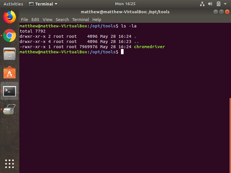 In Linux distributions like Ubuntu, additional custom software is typically installed into the /opt directory. For example, you may save the Chrome driver executable to /opt/tools/chromedriver.