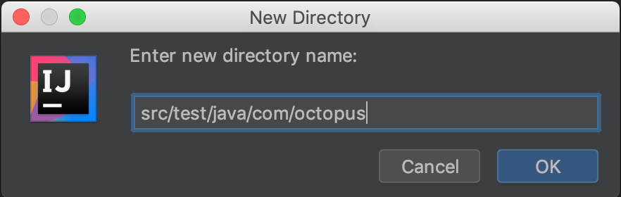 Enter src/test/java/com/octopus as the directory name and click the OK button.