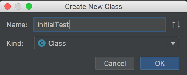 Enter InitialTest as the class name and click the OK button.