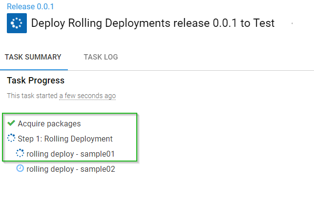 When I deploy the release to the Test environment, Octopus deploys to one deployment target at a time, as I configured in my deployment process earlier: