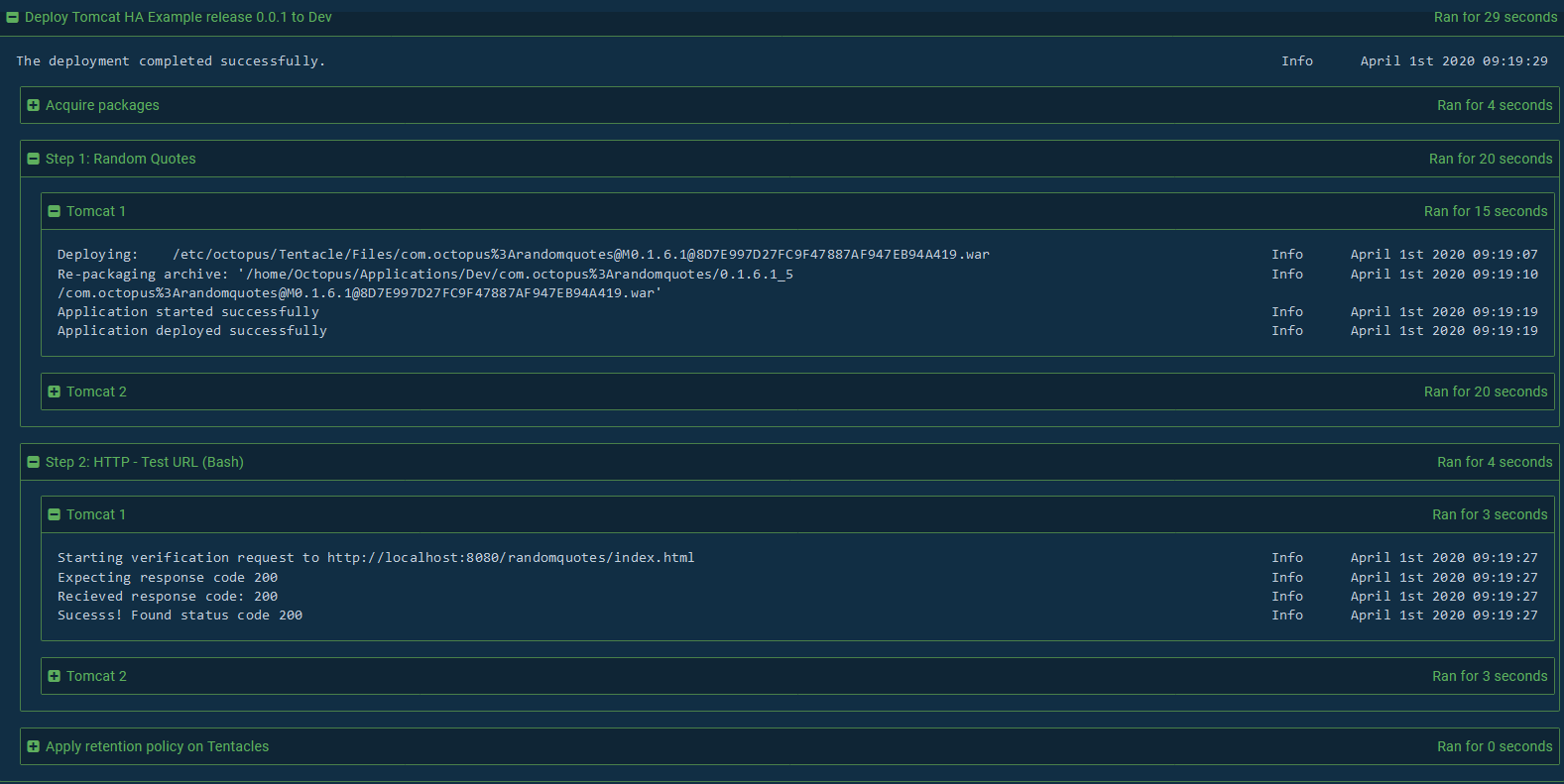 - Smoke tested the deployments with community steps in Octopus.