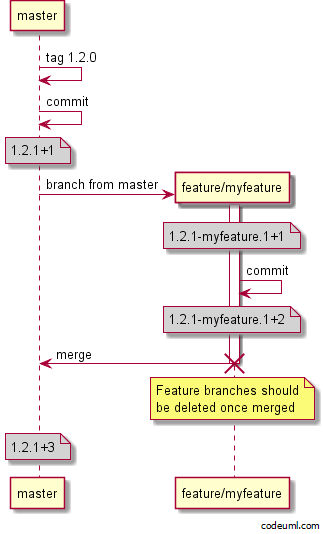 This means Maven considers version 1.2.1-myfeature is to be a later release than 1.2.1, when clearly that is not the intention of a feature branch. You can verify this behavior with the following test in a project hosted on GitHub.
