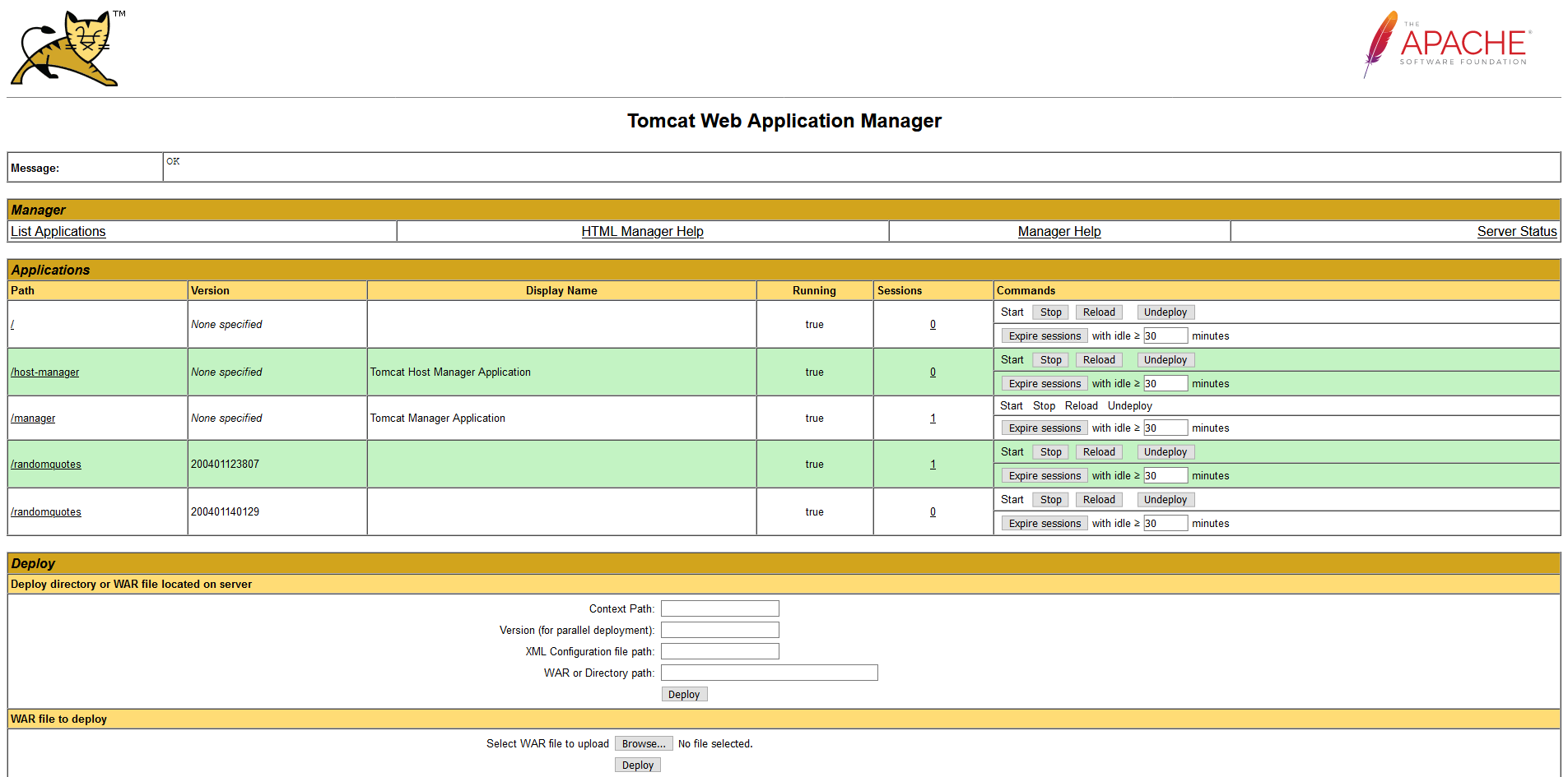 We can now load the manager console from https://tomcatip:8443/manager/html.