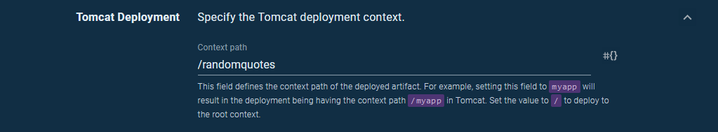 1.2.1-myfeature.1+1generates a context path of/randomquotes-myfeature. - Version