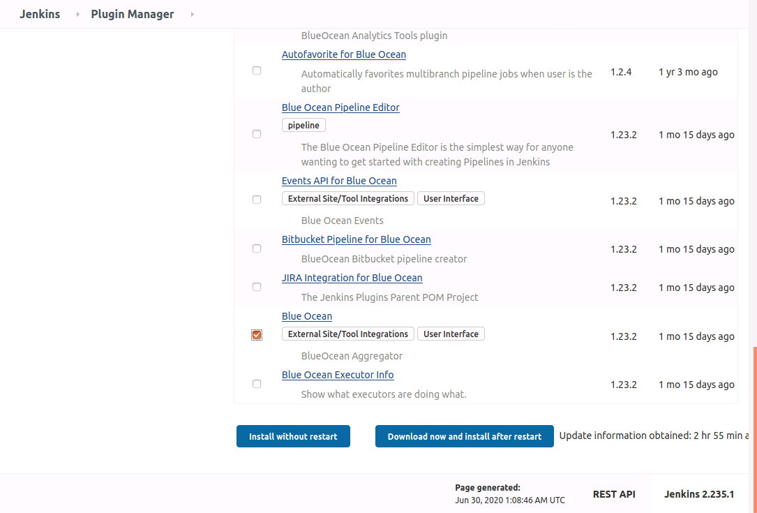 Blue Ocean is a re-imagining of the Jenkins build experience. It is installed as a plugin: