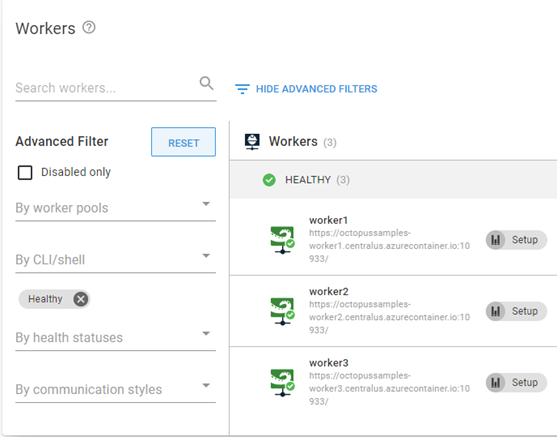 When configured in Listening mode, the Tentacle container is coded to automatically connect to your Octopus Server and register itself to the specified worker pool. After the runbook completed, I had three, healthy workers.